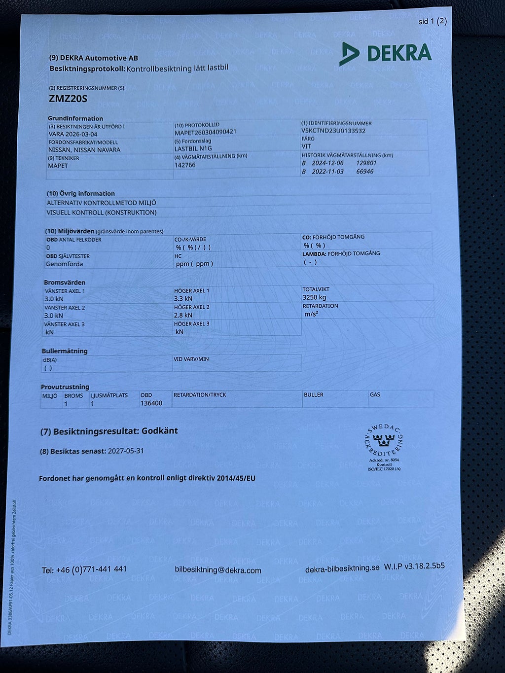 Säljer en välvårdad och välutrustad Nissan Navara med avlyftbar moms. Bilen har följande utrustning: Teknapaket, Automat, Svart läderklädsel, Dubbelhytt, Klima, Multiratt, Farthållare, Färddator, Navigation, 360-kamera, Backkamera, Glastaklucka, CD-Stereo med Telefon Bluetooth, Aux + USB-uttag, Keyless nyckellöst system för låsning/upplåsning samt start av bil, Värmestolar, Dragkrok, Rails, Sidesteps, Extraljus i front, 18" LM-Hjul, Elhissar, Elspeglar, kåpa med öppning på båda sidor samt bak m.m. Svensksåld med 1 Ägare sedan ny! Full Servicebok! Nyservad 251110 vid 14758 mil! Nya bromsbelägg fram! Nybesiktigad 260304 utan anmärkning! Besiktigad till 270531! Välvårdad! Kåpan behöver lite småfix med lås m.m. Avlyftbar moms! Går att leasa! Priset är 223.920 kr + moms. Vi tar bil, husvagn, husbilar i inbyte och erbjuder förmånlig finansiering!
